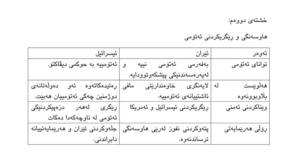 ٢.لێدانی سەربازی ئیسرائیلی: لەوانەیە ببێتە مایەی جەنگێکی هەرێمایەتی بە کاردانەوەی حزبوڵا و حەشدی شەعبییەوە لە عێراق - ئەوەی ئێستا دەگوزەرێت لەنێوانیاندا.