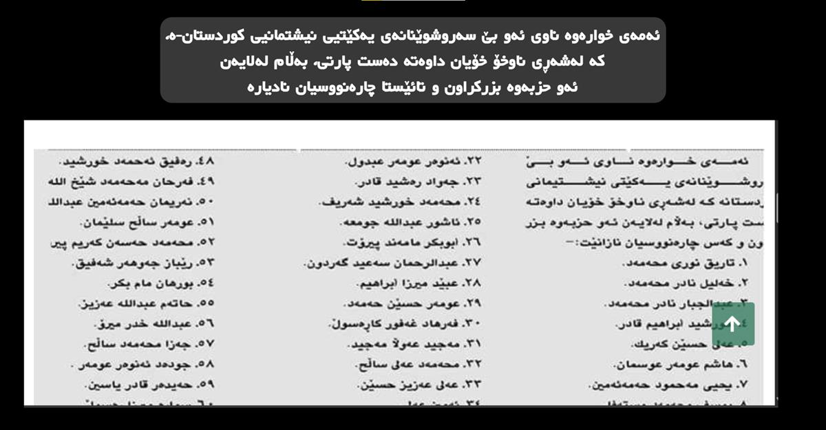 هاوكات PUKMEDIA ناوی بەشێك لەكادرو لایەنگرانی یەكێتی و هاووڵاتی هەولێر بڵاودەكاتەوە كە تائێستاش بەهۆی ئەو خیانەتەی پارتییەوە بێسەروشوێنن: