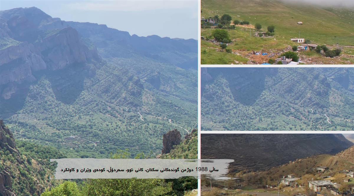 - دوژمن گوندهكانی"سكتان، كانی توو، سهردۆڵ، كوده"ی وێران و كاولكرد.