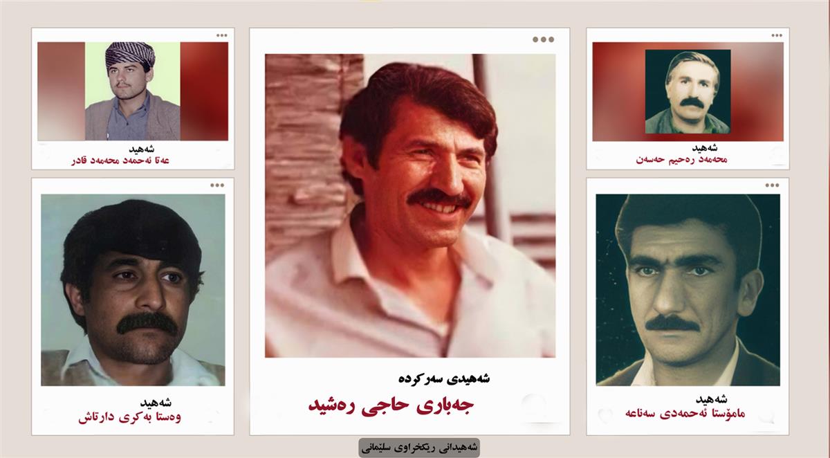 - رۆژی(16/10/1990) ئەم پێنج قارەمانە شەهیدان جەبارى حاجى رەشید، مامۆستا ئەحمەدی سەناعە، وەستا بەكری دارتاش، حەمە رەحیم، عەتای حاجی ئەحمەد بڕیاری لە سێدارەدانیان بەسەردا دراو لە(7/11/1990) لەسێدارەدران، دوای ئازادكردنی عێراق لە چنگی رەشی بەعسییان، رۆژی(25/5/2023) تەرمی پیرۆزیان لەگۆڕستانی كەرخی شاری بەغدا دۆزرانەوەو دەرهێنرانەوەو بەرەو شارى سلێمانى بەڕێکران و لەگۆڕستانی گردی سەیوان بەخاك سپێردرانەوە